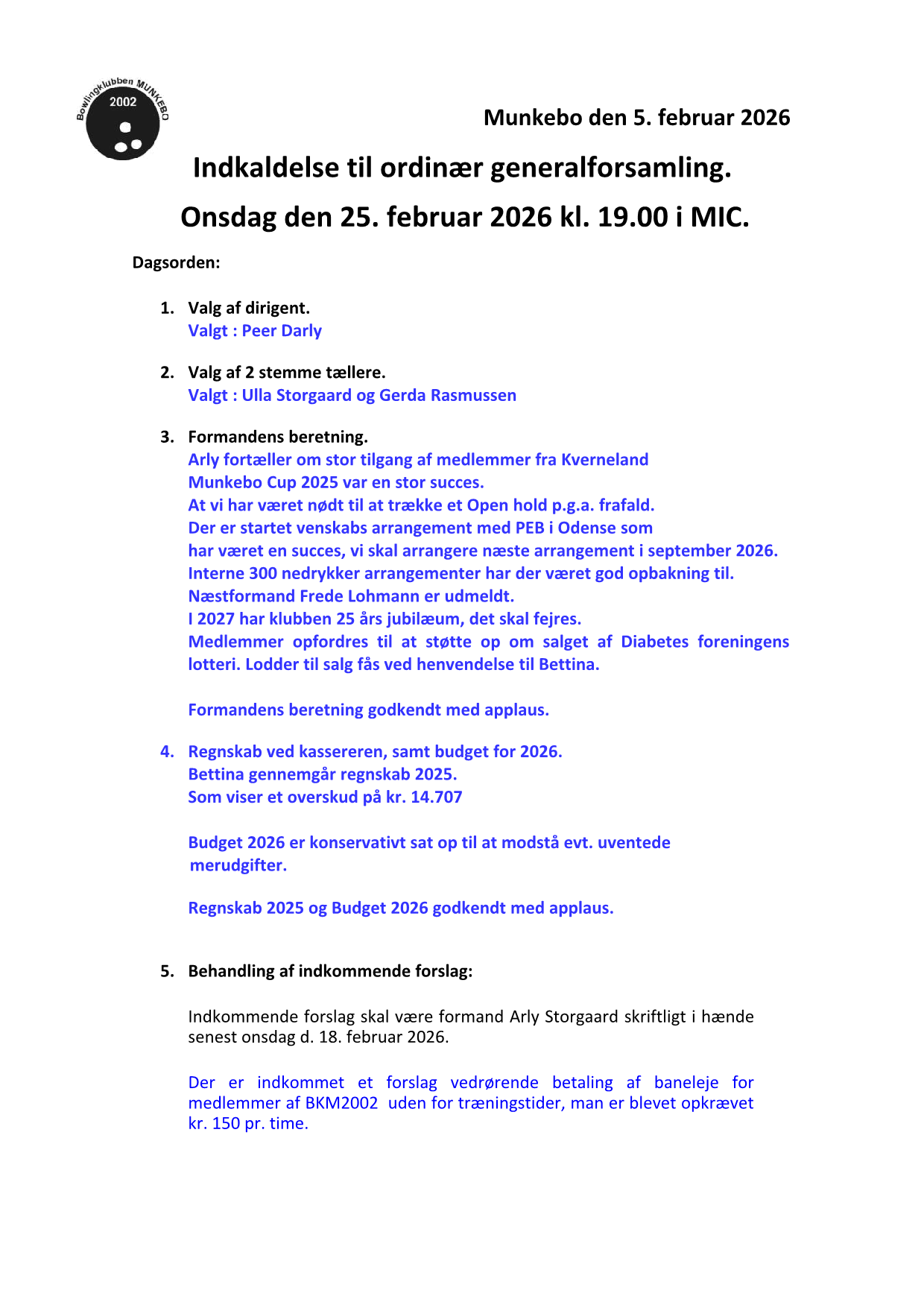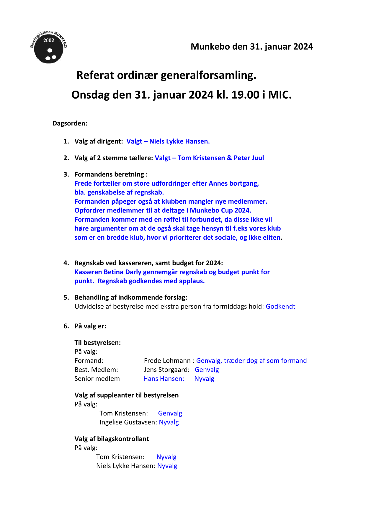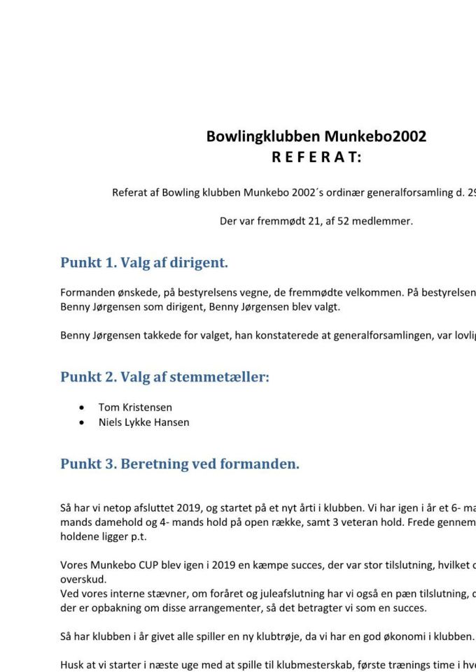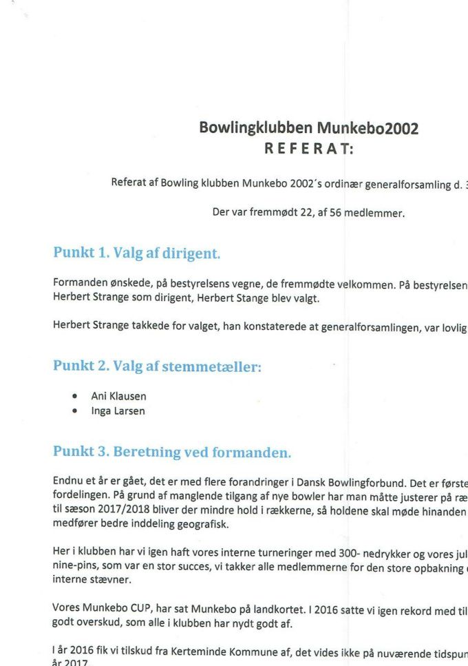 Referat af Bowling klubben Munkebo 2002´s ordinær generalforsamling d. 27.01.16