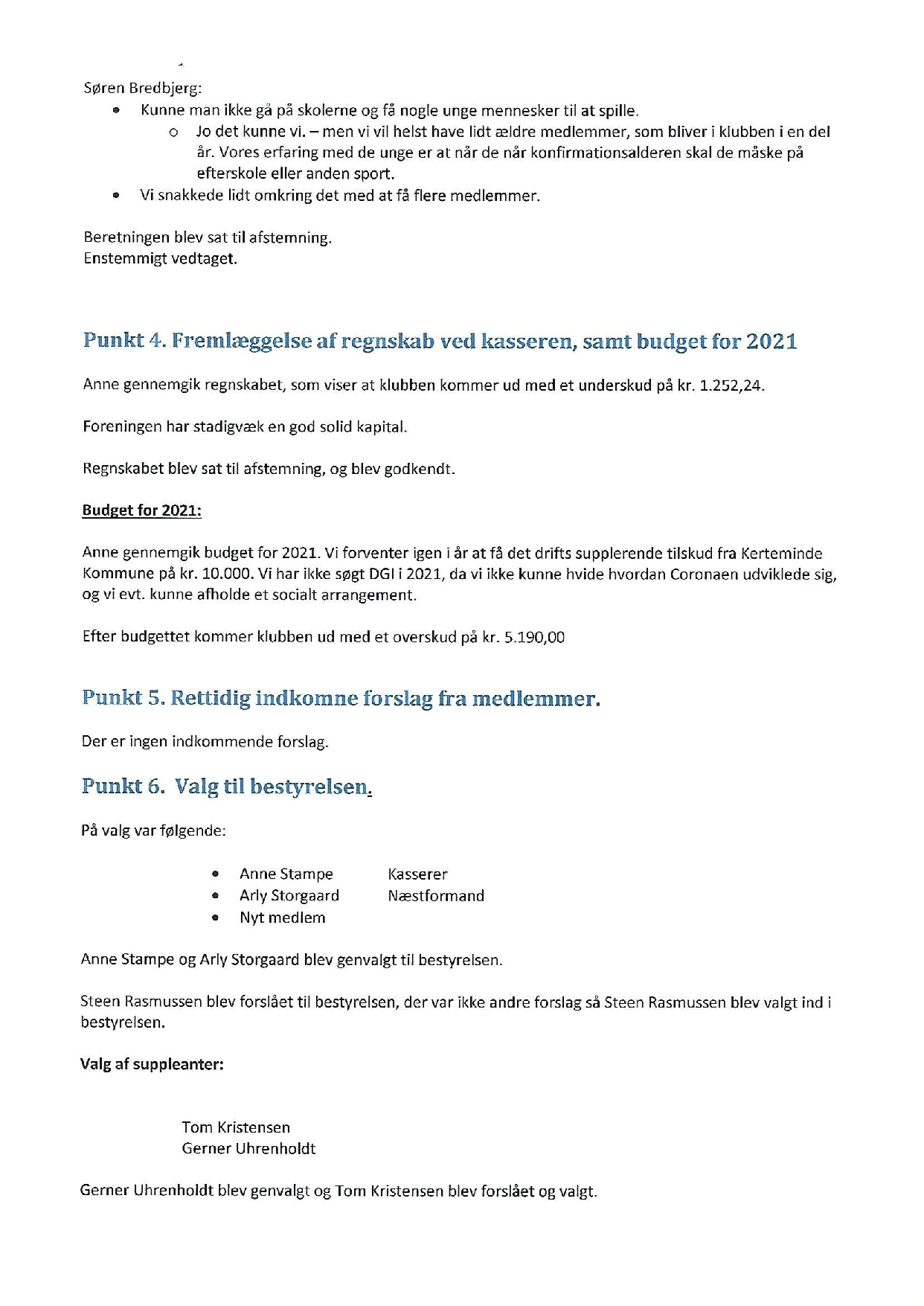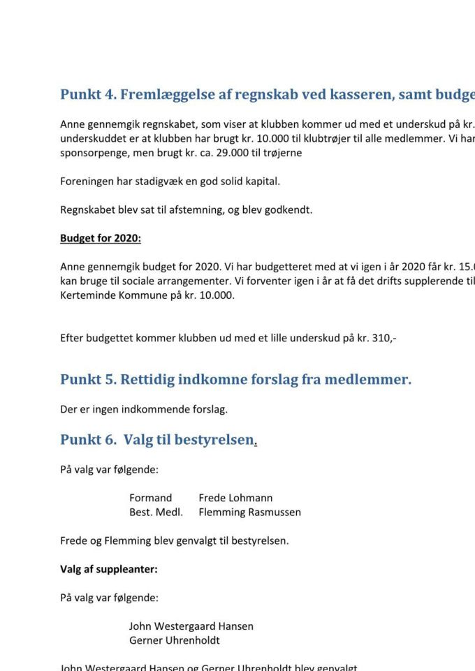 Der er gået et år siden sidst med arbejde i klubben, året har budt på mange ting. Der har været forhandlinger med hallen, Eva og Kerteminde Kommune ang. vore baneleje, det kommer Anne nærmere ind på senere i aften.