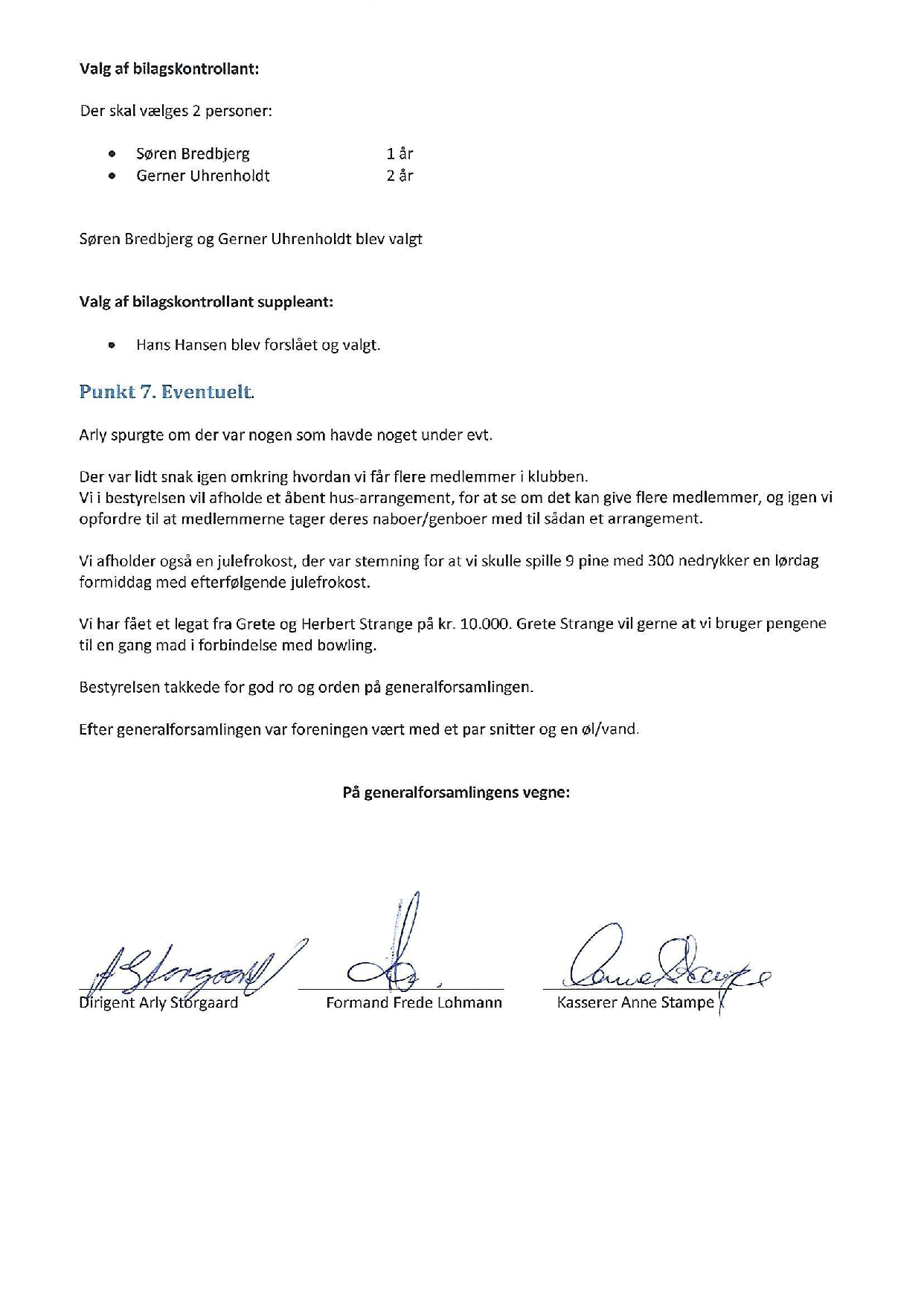 Ani Klausen blev genvalgt, Gerner Uhrenholdt var ikke tilstede, John Westergaard Hansen blev valgt