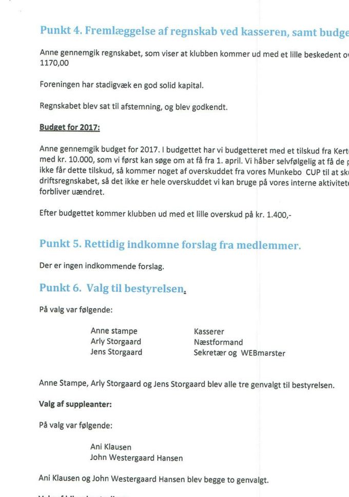 Efter budgettet kommer klubben ud med et lille overskud på kr.3.150. Det er selv om at overskuddet fra vores Munkebo CUP skal bruges på klubbens medlemmer.